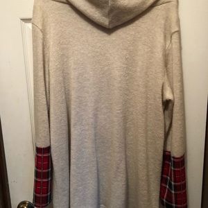 Christmas sweater with cowl neck, deer head, plaid sleeves. Very cute! Never worn.