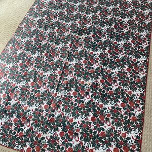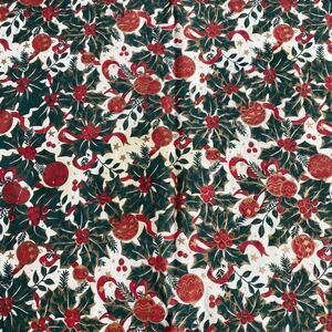 Christmas tablecloth cream red green holly & ornaments festive traditional cloth