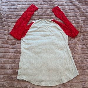 This soft red lace top is a fashion statement! The fabric is cozy and high-quality. The reindeer print red lace sleeves add a playful and vibrant element. The long sleeves give a relaxed and comfortable vibe. The relaxed fit allows for easy movement. The red lace add a trendy and fashionable detail. Perfect for casual gatherings or evening soirees, embracing effortless fashion and turning heads effortlessly! Just in time for Christmas 🎄NWT arrived New in bag .