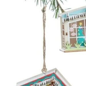 There's no place like home for the holidays, especially when it has all the clean lines and cool style of our mid-century-modern house ornaments. Crafted of laser-cut wood, strung with lights and adorned with delightful details, these retro residence in aqua is brimming with architectural charm.