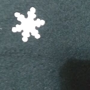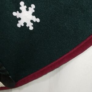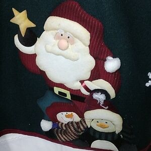 Christmas tree skirt, heavy felt fabric with snowflakes and Santa decor. Measures a normal size approx 22in wide around all sides of circle. GUC