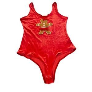 Trendy cozy Christmas ugly sweater red velvet bodysuit size small