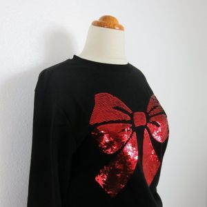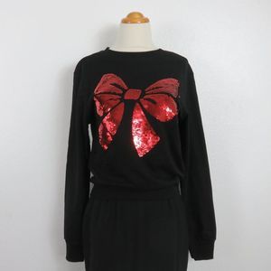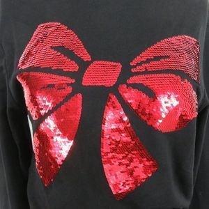 Christmas Bow Sweater Sweatshirt - Black - Sequins - Small - NEW - Holiday Gift