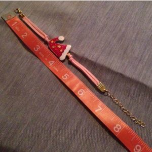 Cute Santa hat on light pink cords. This has a chain extender and lobster clasp on the back. New in package. It's a great stocking stuffer.