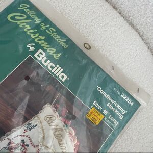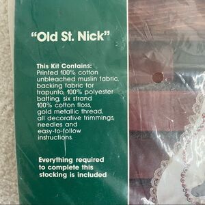 New old stock, sealed in package. Gallery of stitches Christmas by Bucilla Candlewicking stocking needlework kit To make a 18 inch long old Saint Nick stocking. Includes fabric and packing, bedding, Floss, Thread, decorative trimmings, needles and easy to follow instructions.
