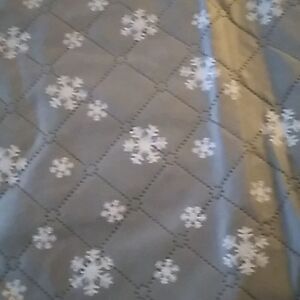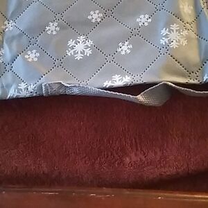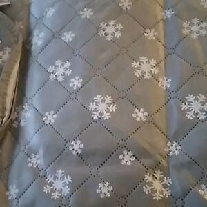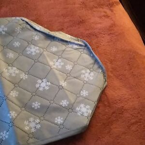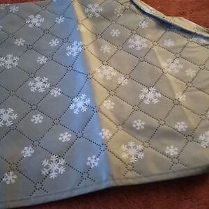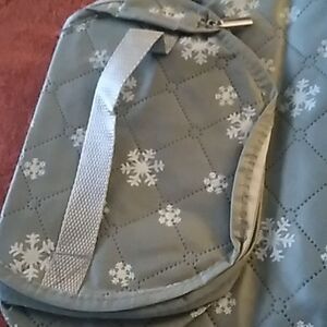 Pre-owned in new unused condition. Gray with a white snowflake design. Has a zip closure and and handle on top. Also has a handle on the side for carrying.