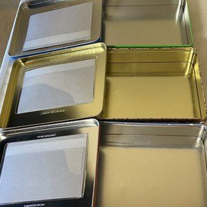 These tins are at least 17 years old and very lightly used. Fits a 4X6 photo. Sold in a variety of patterns. Measurements are the same for all 3 tins.