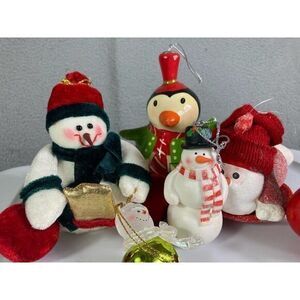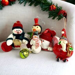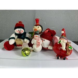 Christmas Ornament Vintage Lot Set of 6 Santa Penguin Snowman 90s Holiday Tree