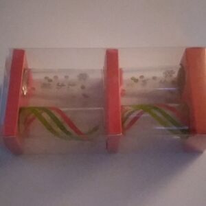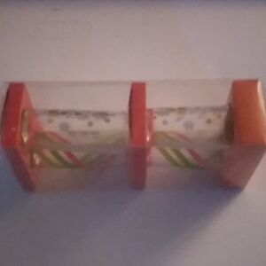Pre-owned in new unused condition. Four Holiday glasses with words JingleJuice, Let it Flow, Santa's Little Helper and Get Lit in gold. Comes in a nice gift box.