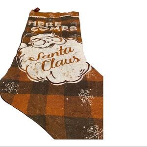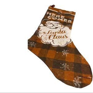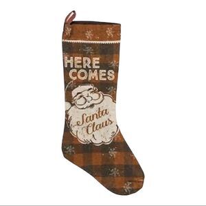 Christmas Stocking 19 Inch Buffalo Plaid Brown Here Comes Santa Claus Stocking