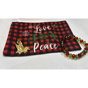 Christmas-Themed Love & Peace Zippered Pouch Glass Bead Bracelet & Candle Brooch