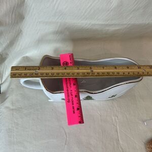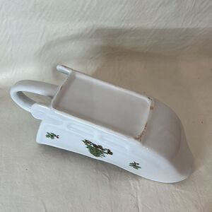 Christmas Tree Sleigh Gravy Boat 20 Oz Gold Trimmed Porcelain White Green Holly