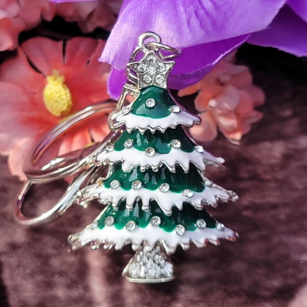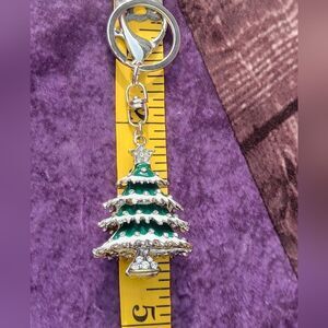 Multi Colored Austrian Crystal, Enameled Christmas Tree Keychain in Silvertone