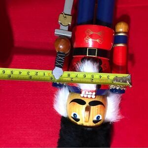 Red & Blue Christmas wooden nutcracker. Pre-owned in good condition. Please refer to pictures for best description and condition verification.