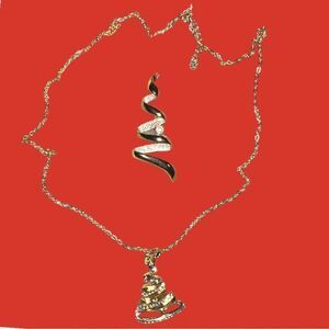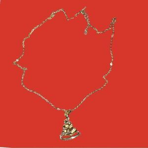 Really pretty gold necklace with gold and faux diamond encrusted Christmas tree pendant! New! Pin sold separately! Faux gold