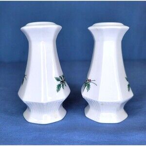 Christmastime Salt & Pepper Shakers NIKKO Japan Holly Berry White Christmas