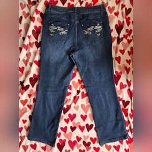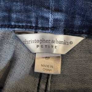 These bling jeans are super cute. They are size 8P. Made by Christopher & Banks. Bling on back pockets and bling button.