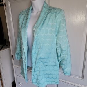 Christopher And Banks Light Blue Satin Circle Print Open Blazer Jacket Size M