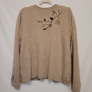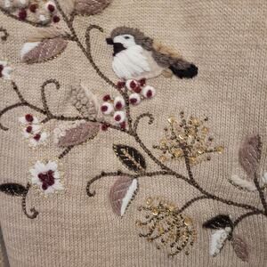 Christopher & Banks 2-Piece Embroidered Bird Cardigan Sweater Set XL Beige NWT