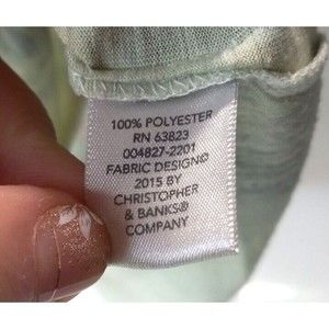 This Christopher & Banks T-shirt features an Italian scene print in a watercolor motif. The T-shirt has 3/4, classic/fitted sleeves and a round neckline. It's made of polyester and is a small. The shoulders measure 15 inches, the chest measures 19 inches across, the sleeves are 16.5inches, and the overall length from shoulder to hemline is 22.5 inches. Please see pictures for more details.