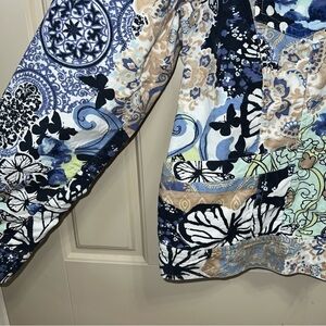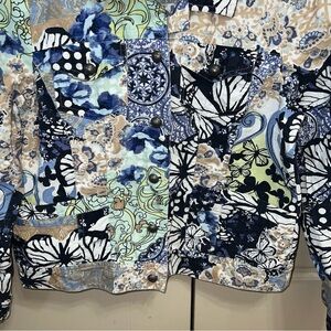 Christopher & Banks Abstract Blue Print Denim Jean Jacket Size Medium