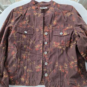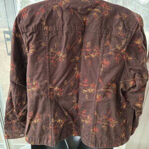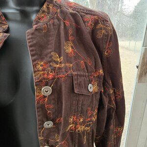 Fall colors embroidered jacket would look great layered casual or dressed up a bit. It us unlined and in great shape. All photos taken in natural light, please see photos for condition and to see the jacket details.