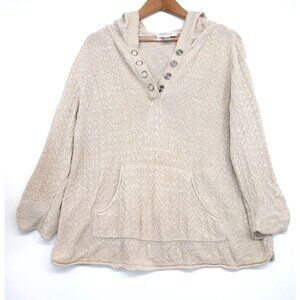 Christopher & Banks Beige Hooddie Knit Sweater Tunic With Button Details Size L