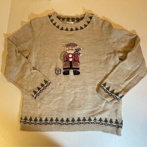 Christopher & Banks Beige Sweater with Santa Design. Size M. Pre-owned
