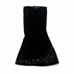 Christopher & Banks Black Velvet Maxi Skirt WhimsyGoth Floral Embroidery Size 10