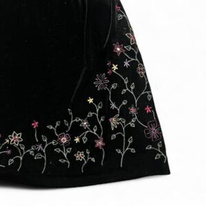 black velvet, floral embroidery, maxi length, gothic style, boho inspired, zipper closure, evening wear, vintage vibe, elegant silhouette, retro fashion
