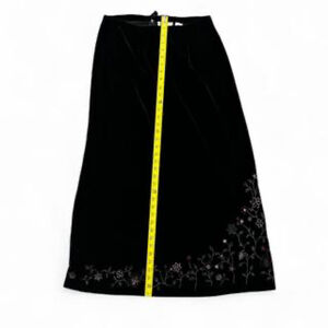 Christopher & Banks; velvet skirt; black velvet skirt; maxi skirt; long skirt; embroidered skirt; floral embroidery; vintage skirt; boho skirt; gothic skirt; Y2K skirt; retro style; holiday skirt; evening skirt; formal skirt; elegant skirt; zipper back skirt; classic black skirt