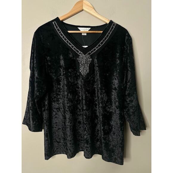 Christopher & Banks Black Velvet Top Beaded Whimisgoth Goth Witchy Boho Size XL