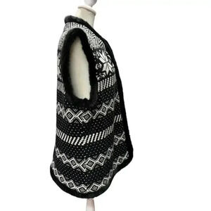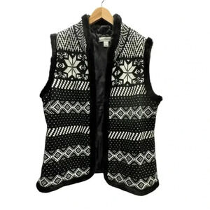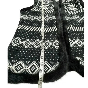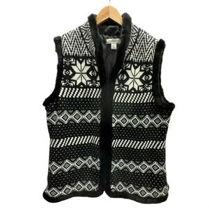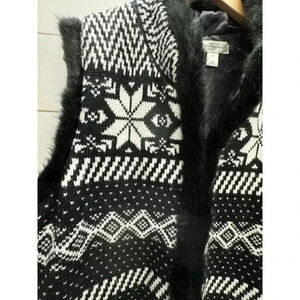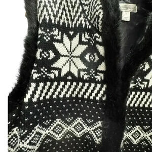 Christopher & Banks Black & White Knit with Faux Fur Trim Stand up Collar Sz XL
