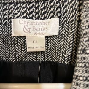 Chic textured blazer with a classic collar. Versatile black and white design. Ideal for professional or casual wear.