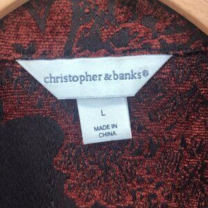 Christopher & Banks Blazer Womens Large Rust Brown Tapestry Weave Zip Up Career