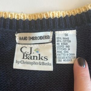 Christopher & Banks Blue Cream V-Neck Sweater - 1x