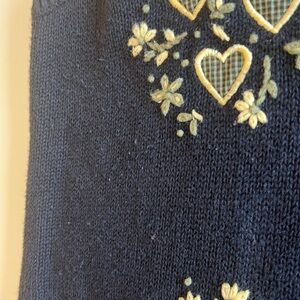 This elegant V-neck sweater from Christopher & Banks features a harmonious blend of blue and cream hues. The intricate floral motifs add a touch of granny, a bit of teacher circa 1990, making it a versatile piece for any wardrobe. Its classic design ensures timeless appeal and comfort.