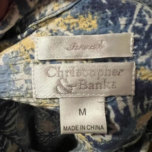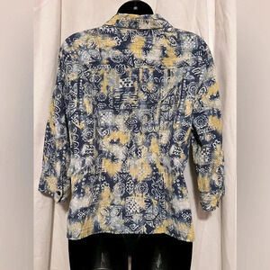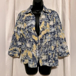 Christopher & Banks Blue/Yellow Zip Up Jacket 3/4 Sleeve Stretch Woman's Sz M