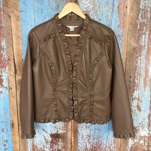 Christopher & Banks Brown Jacket w/ Ruffle Jacket