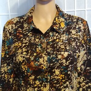 Soft to the touch, Christopher & Banks Blazer in a brown and beige splatter pattern.