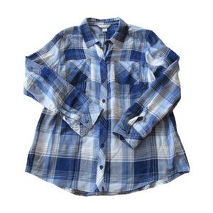 Christopher & Banks Button Up Dress Shirt Womens Medium Blue Striped Collar Top