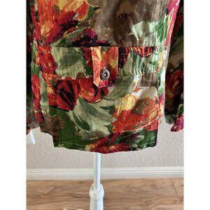 Christopher & Banks Button Up Jacket Womens XL Peplin Floral Lightweight Collar