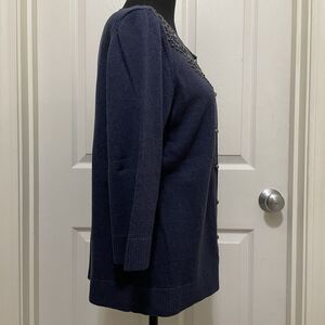 Christopher & Banks Button Up Knit Cardigan 3/4 Sleeve Beads Embellished Large