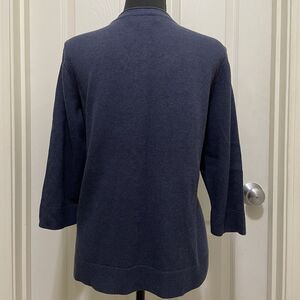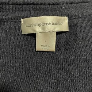 This Christopher & Banks knit cardigan in a women's size large is both stylish and comfortable. It features three-quarter sleeves and a button-up front with metal buttons for a polished touch. The chest and shoulder area is adorned with beautiful beadwork that adds just the right amount of detail and charm. Made from 100% cotton, it's soft, breathable, and perfect for layering.