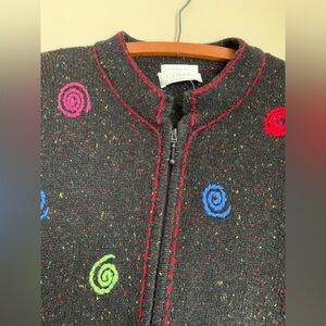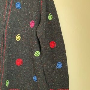 Christopher & Banks Cardigan Sweater Multicolor Hand Embroidered Swirls.
