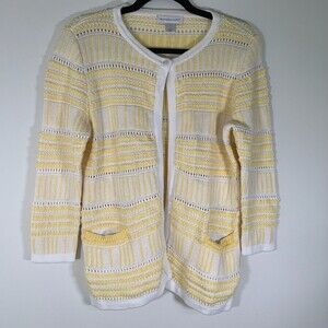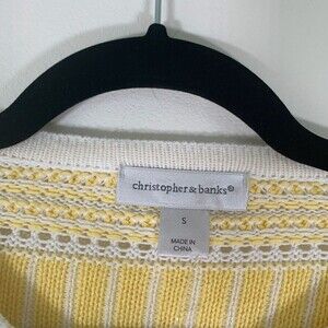 Christopher & Banks Cardigan Women’s Small Yellow White Knit Sweater