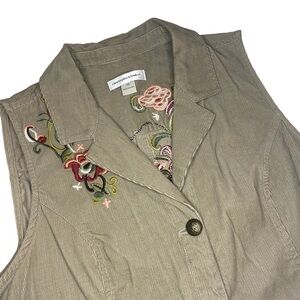 Christopher & Banks Corduroy Embroided boho womens vest size medium tan