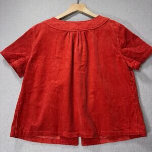 Charming Christopher Banks corduroy top! The orange hue and soft corduroy fabric create a cozy and stylish look. Perfect for adding a touch of cottagecore chic to your everyday outfits. It features button-down design and short sleeves. It's in great condition and ready for its new owner!