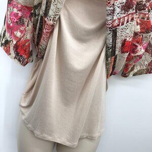 Christopher & Banks Cream Floral Print Eyelet Lace Overlay Blouse Size S