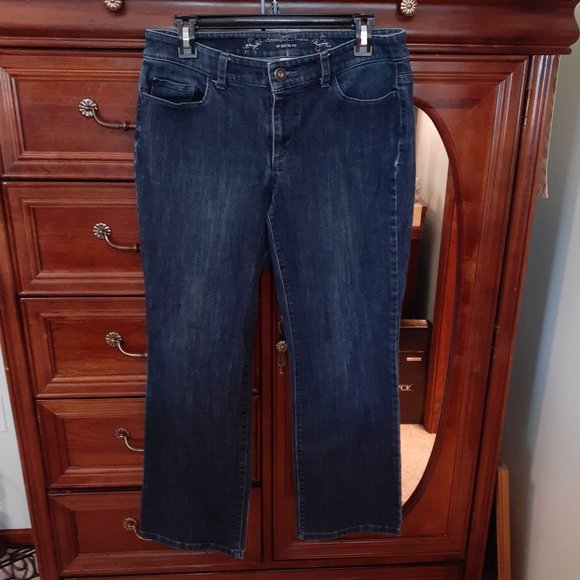 ▪️Description: Christopher & Banks Modern Fit Dark Wash Women's Jeans. These are a dark wash denim with some stretch to them. Modern Bootcut Fit, 6 Short.